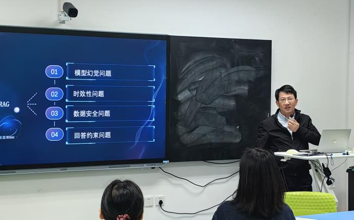 报告之后,来自不同学科背景、不同科研团队的教师们纷纷发言,进一步讨论了如何提高AI人工智能的精确度、RAG技术是否可以运用到学校系统中、如何实现Reranking、RAG的评估等问题。在轻松活跃的氛围中,大家不仅增进了对AI大模型的理解,还围绕RAG技术、人工智能问答精确度等话题展开了热烈深入的对话